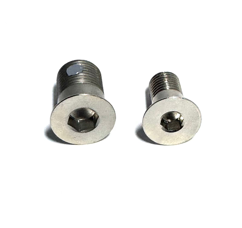 These Bushing Bolts are grade 12.9 rated and nickel coated. They have a button head design and less chance that they will hit squarely on a rock and bend. A multi-use thread locker has been applied, so you can remove them to change bushings and the thread lock will hold up. Steal has great fatigue strength when it comes to getting bent. Footpegs tend to take the most abuse out of all the components. We designed our hardware to bend rather than break in and major impact.