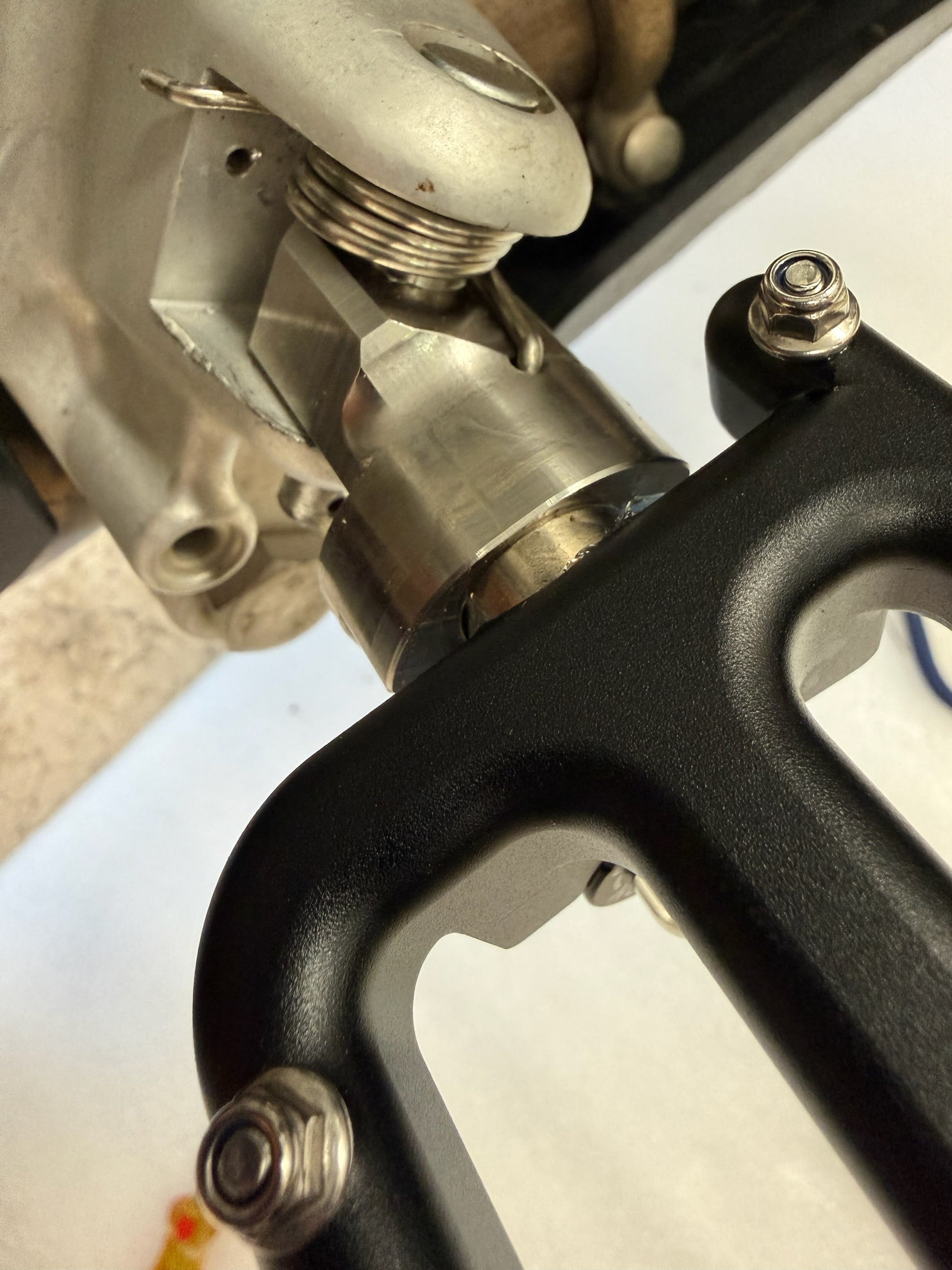 *When mounting these to your Desert X do not use the OEM spring hole drilled into the frame. Hook the spring onto the 90 degree shelf just above it and drop it into the slot. This will tension it, and then install the mounting pin.